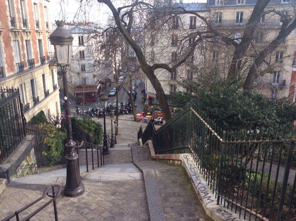 We had 5 hours until our Eurostar train would take us back to the U.K. so with our small backpacks fully loaded we headed left up the long straight road towards the beautiful white Sacre Couer church which we have seen from a distance every day of our trip. Having been there before up the traditional steep road followed by around 300 steps and not wanting to jinx our avoidance of public transport by using the cable-car, we decided to take a little more round-about route.