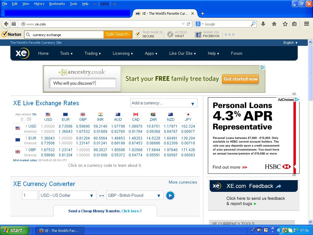 Global Currency Rates early in the morning of 3rd June 2014.