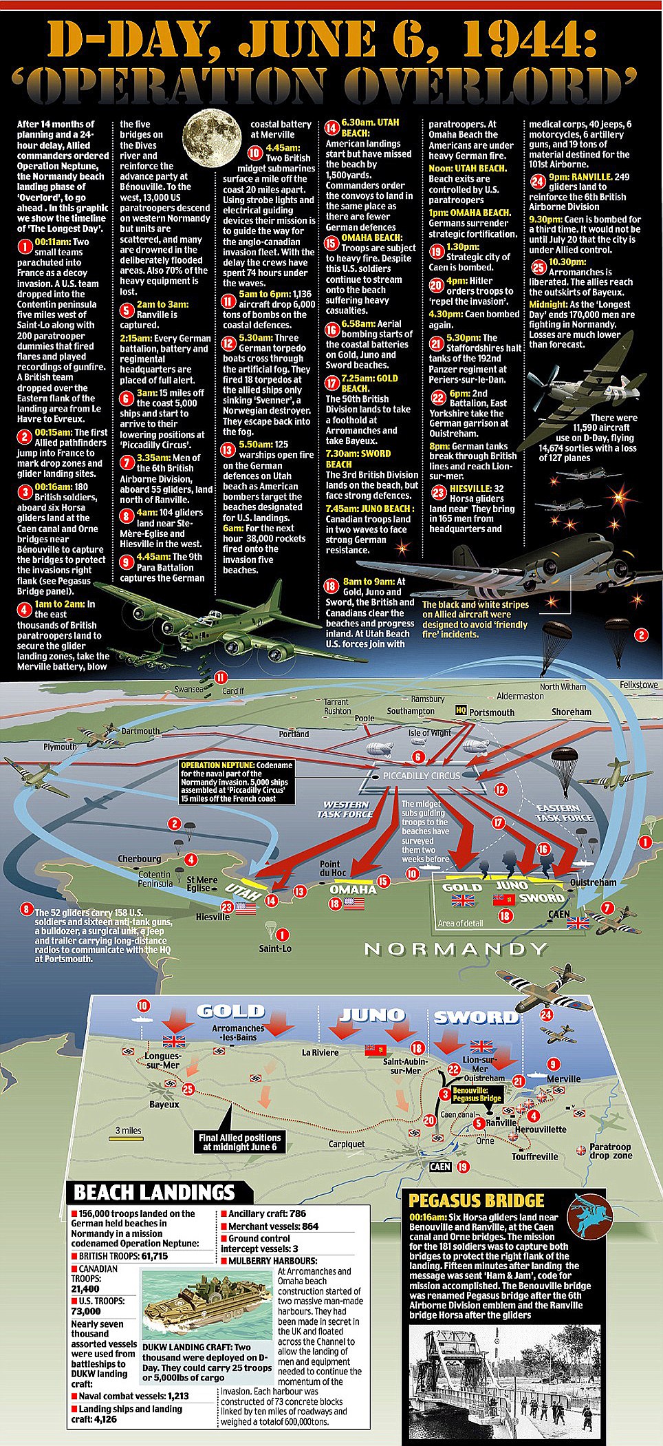 Due to the size of the invasion, the beaches were split up into areas of responsibility. To the west were the two American beaches, Utah and Omaha and to the east the British attacked Gold and Sword with the Canadians responsible for Juno beach between the two British beaches.