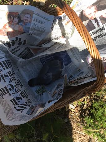 Charlie, for that’s what we named the bird, was asleep in the basket when the RSPCA came but when the vet checked him, she said his wing wasn’t broken but that there was obviously a problem somewhere. She said she would take him back and give him the best medical treatment before releasing him back near the village in a week or two. Apparently Charlie was a fledgling and may have been hit by a car on his first morning out of the nest.