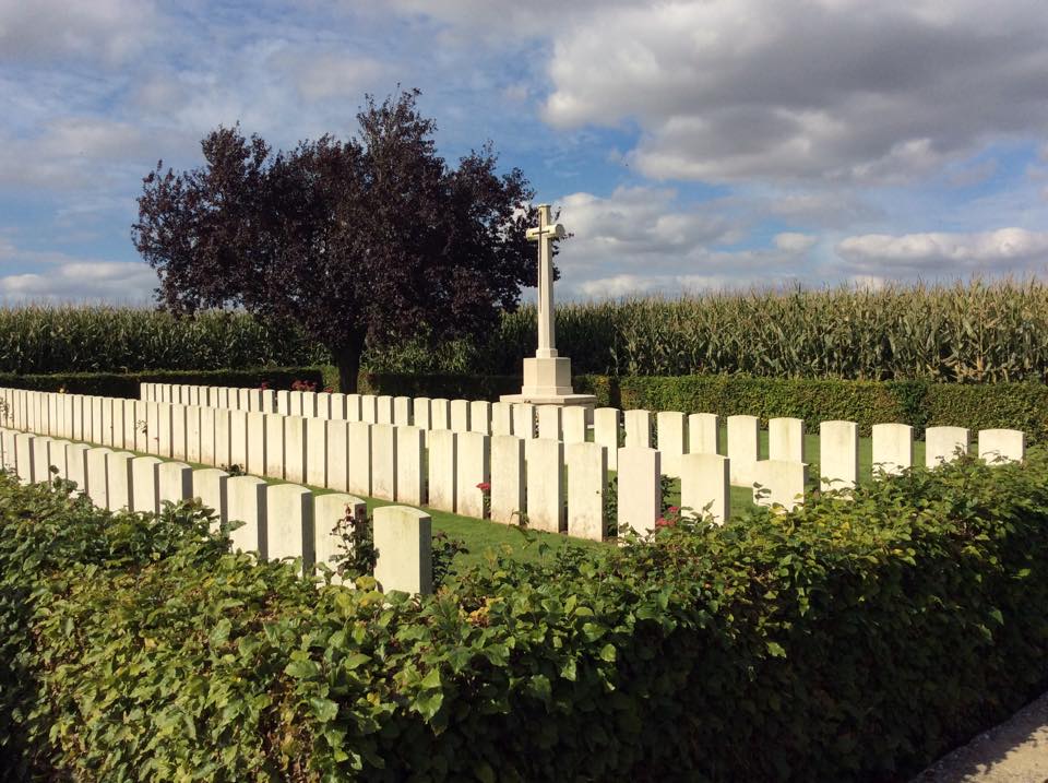 Perhaps one of the most interestingly located war cemeteries at least at that time of year was the Munich Trench cemetery.  A long way up a track with old war munitions lying around for anyone to examine of accidentally blow themselves up by.  This cemetery was surrounded by tall mature sweetcorn and involved a 5 minute walk surrounded by the sweetcorn before you could even see it.  Once there we were lost to the world.  It was all very interesting and all very sad but I can’t think of any places that I have visited that have been more special.