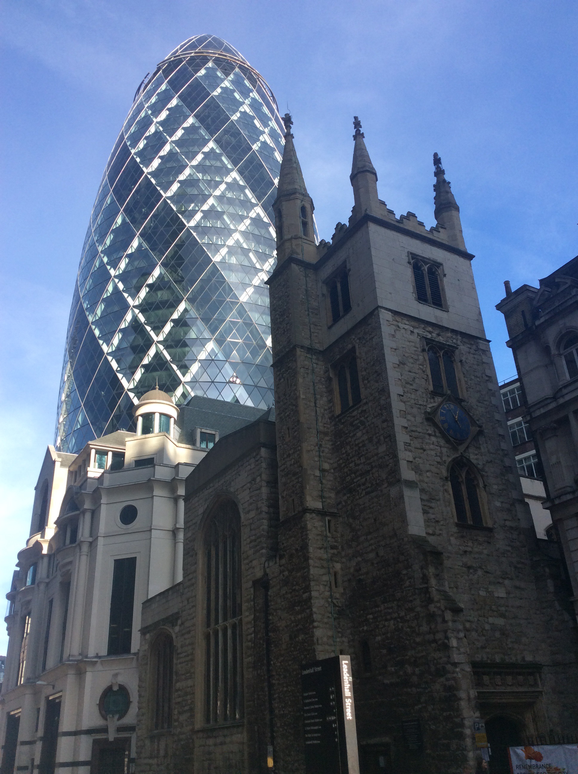 But then you turn round a corner and you see this. 18th/19th century buildings and The Gherkin all in the medieval and often Roman era street plan.