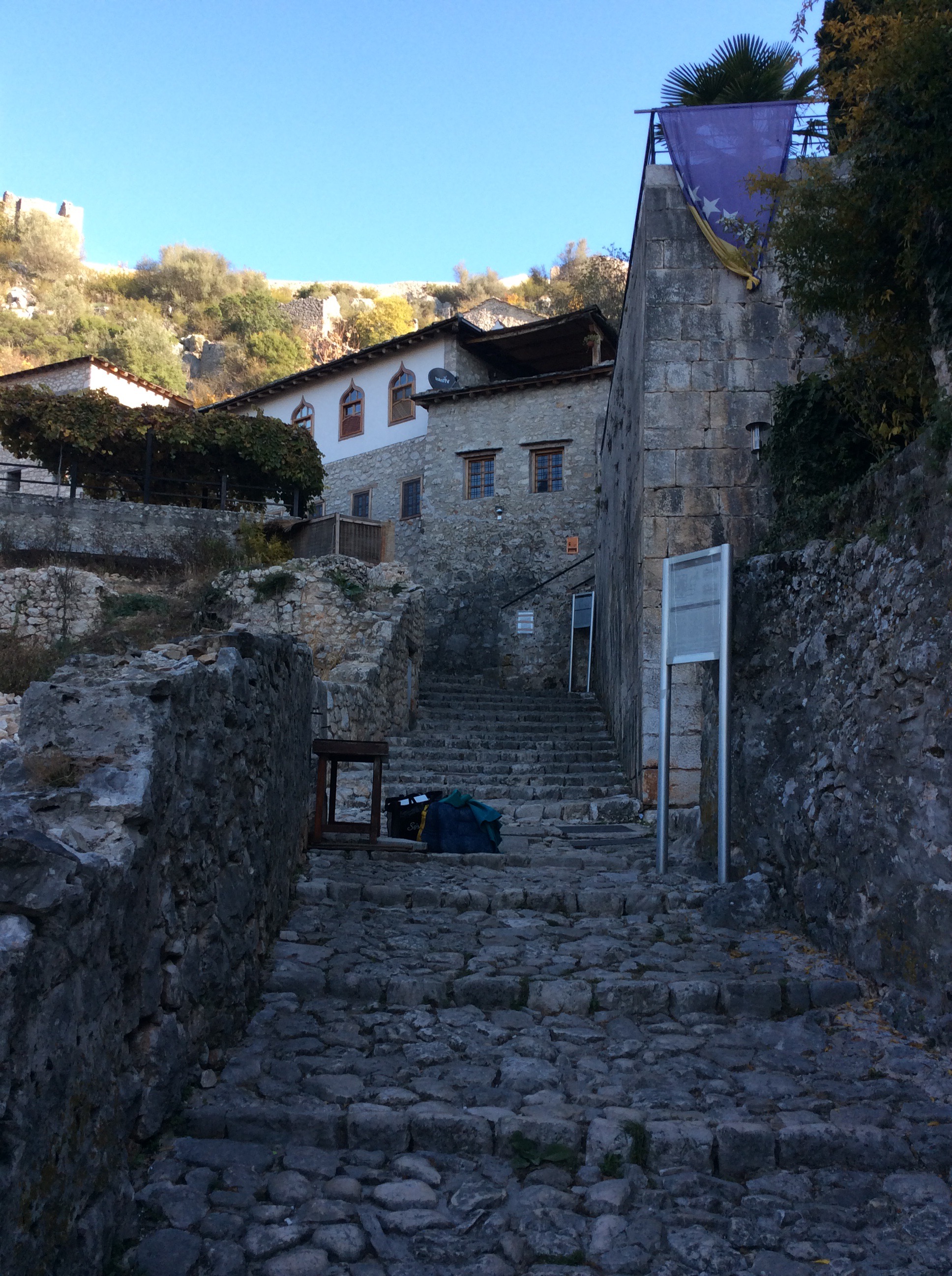 So we drove from Croatia into Bosnia and Bosnia into Croatia and then Croatia into Bosnia, each time stopping twice at each border for various checks. Finally as the terrain turned very mountainous and spectacularly rugged, we headed into Bosnia for the second time.  It was one of the most beautiful and memorable journeys of my life, the autumnal colours and Mosques gave a distinct central Asian feel to me.