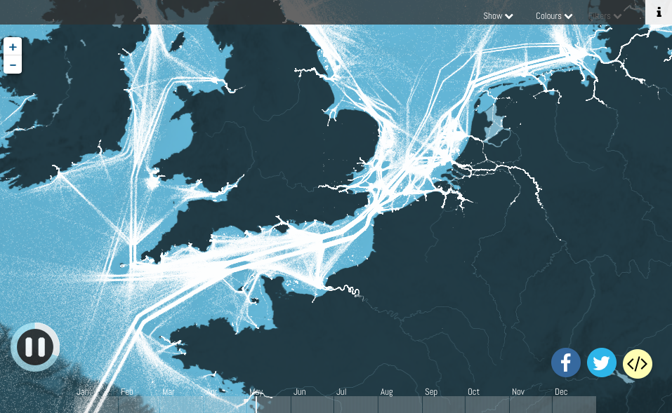 Marine traffic of Britain and Northern Europe all has to pass through the Straits of Dover. Like a busy road, vessels heading North East go in one lane and traffic heading South West go in the other lane... not to mention all the UK-Europe traffic that directs the main route.