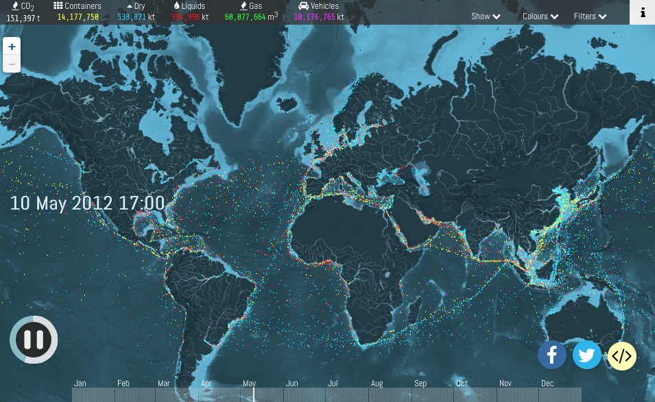 Screen Shot 2016-04-29 at 18.43.29 This map shows the vessels colour coded. Red are oil tankers, yellow are container ships and green are dry goods/