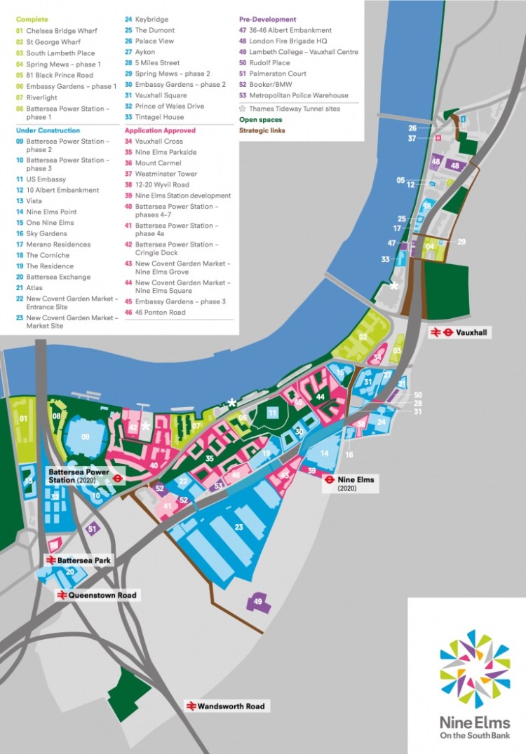 Below is a map of some of the current construction projects in Battersea and Nine Elma.