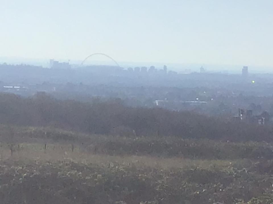 Though lower than me and 10-12 miles away from me, Hampstead Heath rendered St Pauls invisible but I could see lots of my other hangouts.  A mix of Parliament and Westminster Abbey, a big arch which after 10 minutes I realised was the London Eye, the BT Tower in Bloomsbury, The Shard at the south end of London Bridge, the Gherkin, the Deathstar, Canary Wharf and the Docklands way over to the east and right ahead of me the Crystal Palace transmitter and the South Downs which are pretty much exactly on the other side of London.