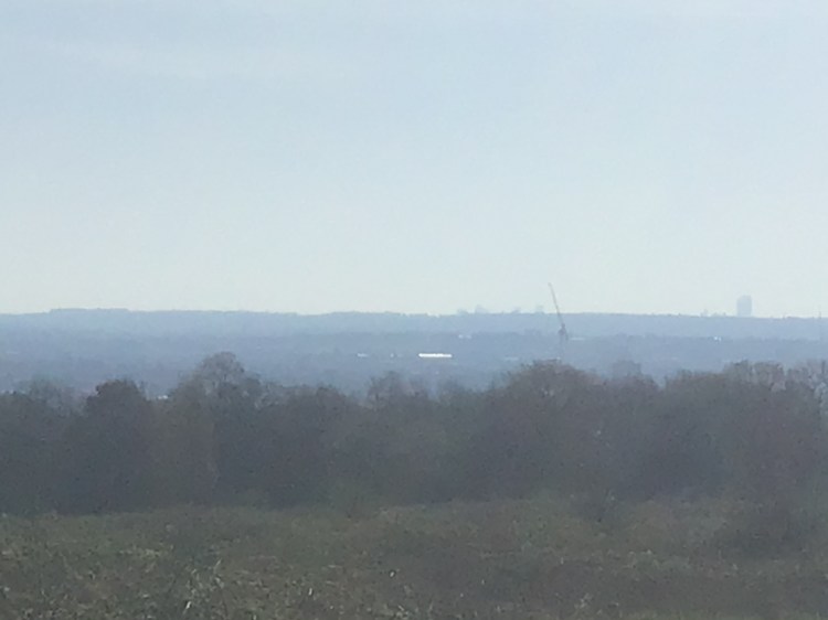 London is largely at sea-level so many of the most famous and beautiful places are on hills.  Hampstead Heath, Alexandra Palace, Harrow-On–The Hill, Primrose Hill but I live way above all of them at over 500 feet or around 150metres.  From my bedroom window looking through a narrow gap between buildings nearby, I can see 20 miles and there is another gap looking north but I haven’t worked out what I’m looking at year.  It’s a bit easier with London though as its rather hard to miss!  However between me and the viewpoint facing south as a 2 mile walk mostly through woods and that’s where I headed.  I’d never be safer from the virus than on the first serious day of the lockdown when all those pesky people with their good immune systems and thoughtless coughs and sneezes were safely behind doors!