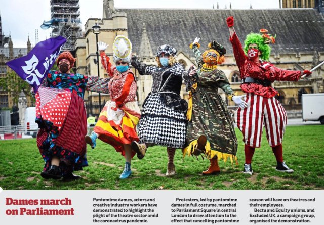And yet despite our suffering we kept our good humour and soon we had re-inforcements from groups acting unions such as Equity and Bectu. What an impact they had, a whole load of workers from Londons famous West End and theatres and cultural venues across the land. Pantomine Dames being incredibly loud and charismatic and attention seeking. For my foreign readers Pantomine Dames might be a very alien concept but they are often loud and big men who dress up in the most colourfully outrageous female outfits for special plays at Christmas time, known as Pantomines… very popular with families and children and a way to get them into the arts and financially very important to theatres in the winter months with fewer tourists.