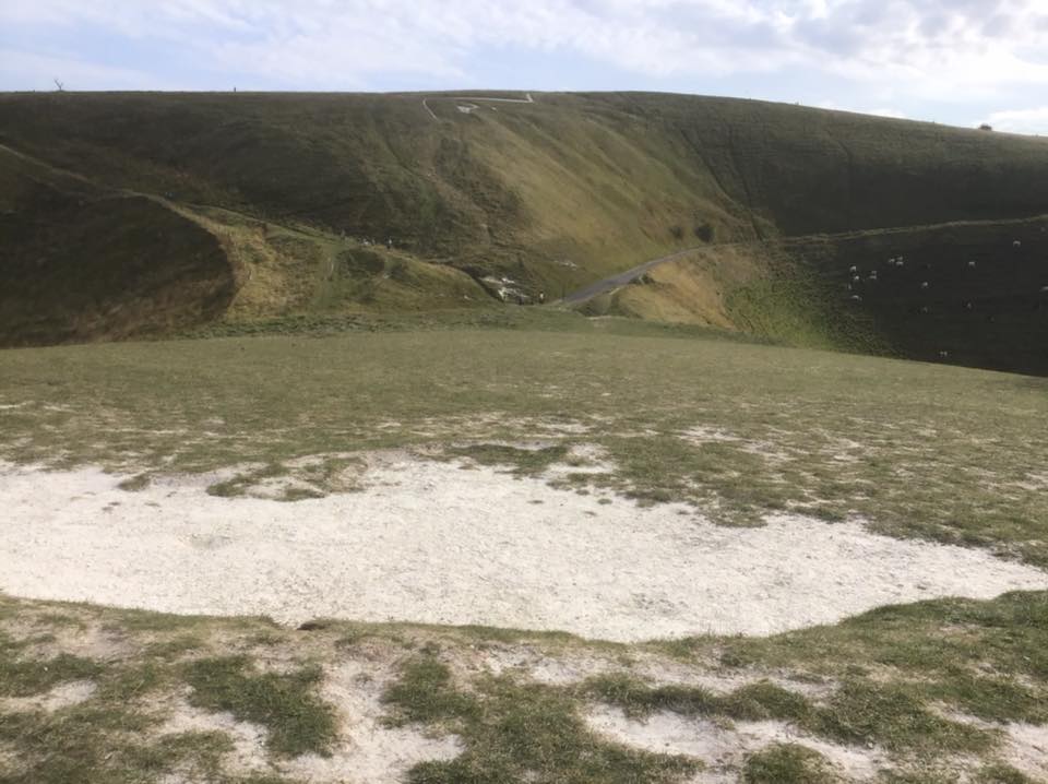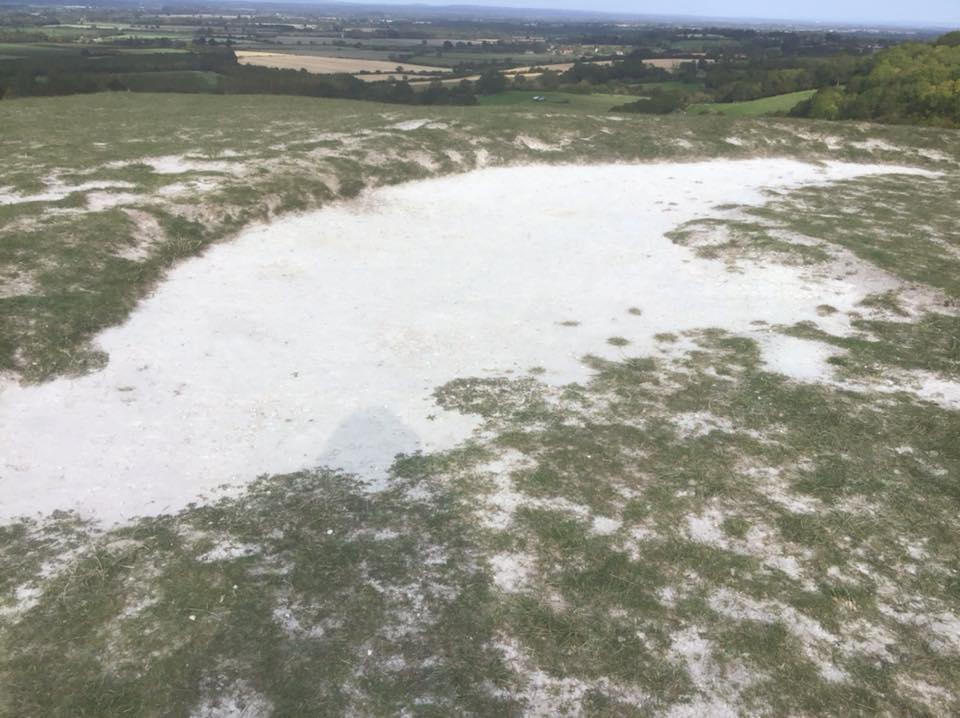 Though it has been shaped by man, it is a naturally occurring chalk hill of a typeset particularly uncommon in these parts. What does make it special is the fact that Saint George killed the dragon here and the blood from the dragon flowed out onto the grass and poisoned the soil. Ever since there has been no grass here and I have a photo to prove it!