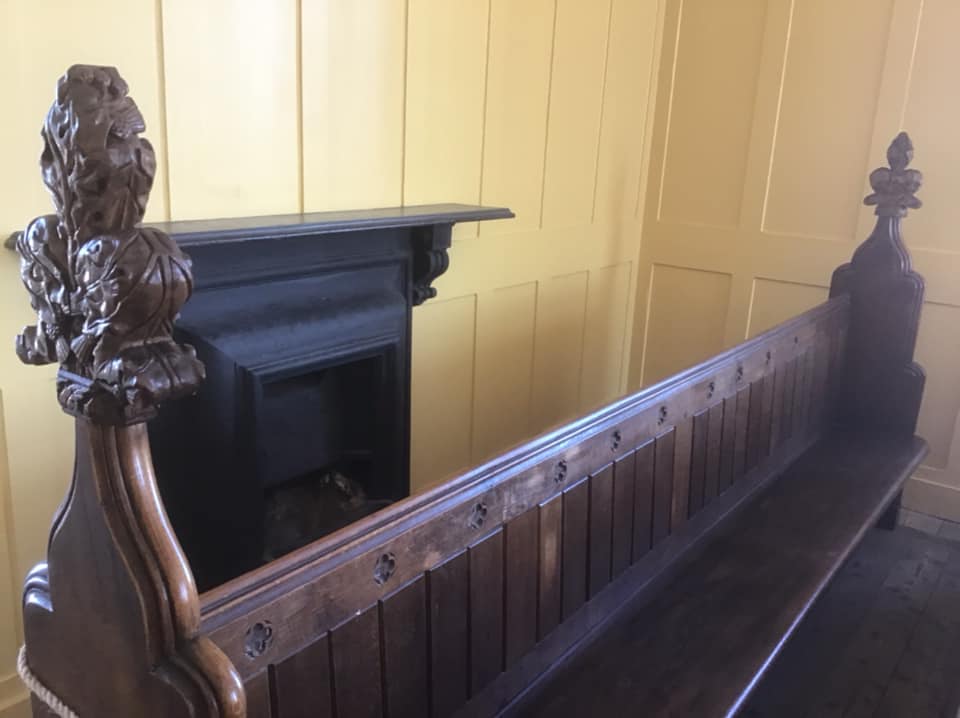 As you can see there is a very small fireplace at the back of the chapel which would be in no way sufficient to warm the room up but would just take the chill off the air for those sitting right at the back, the officers!