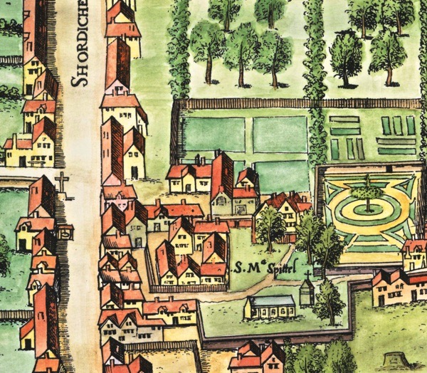 It is thought that starving people flooded into London from the neighbouring county of Essex seeking food after successive crop failures and reached the Priory of St Mary Spital where they died of hunger and were buried here. In particular skulls and leg bones were kept here as they were thought to be the most important bones as they allowed the dead to be able to talk and walk upon Judgement Day and their resurrection and presumably where you get the famous pirates skull and crossbones flag from.