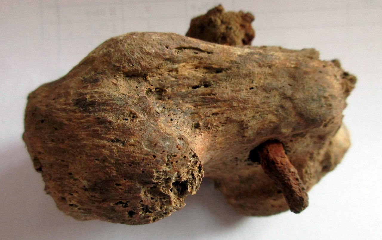 No other nails were found in the man’s body, suggesting that he was tied to the wooden frame with rope and the heel bone nail was to prevent him from moving.