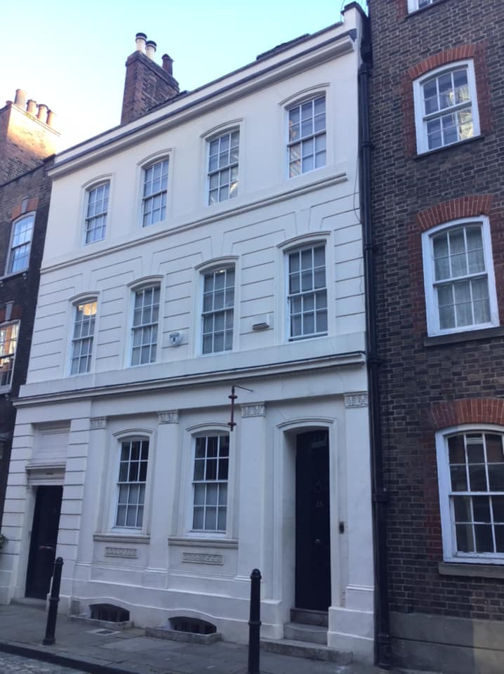 Whilst I was walking around, I found an old wooden spindle mounted outside the house. There used to be more of them around and one has gone even in the last few years so it was a nice surprise to notice this one here, celebrating the Huguenot silk weavers who sought refuge (actually this is where the word refugee originates from) in London and whose industriousness and wealth has bequeathed such a marvellous legacy.