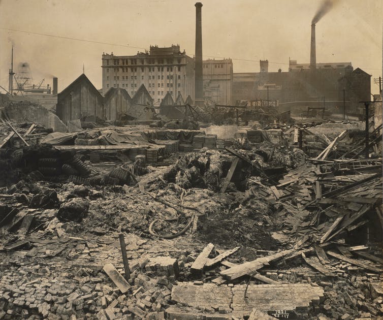 As a report from the Times wrote… ‘The scene immediately after the explosion beggared description. The burning debris had started fires in many of the factories and mills nearby, which became roaring furnaces as the night progressed. In all directions, people who had escaped serious injury were picking themselves up in a dazed condition. Mothers were frantically looking about for their little ones, many of whom were buried in the ruins, while on the pavements were the bodies of the pedestrians who had been struck as they were walking along.