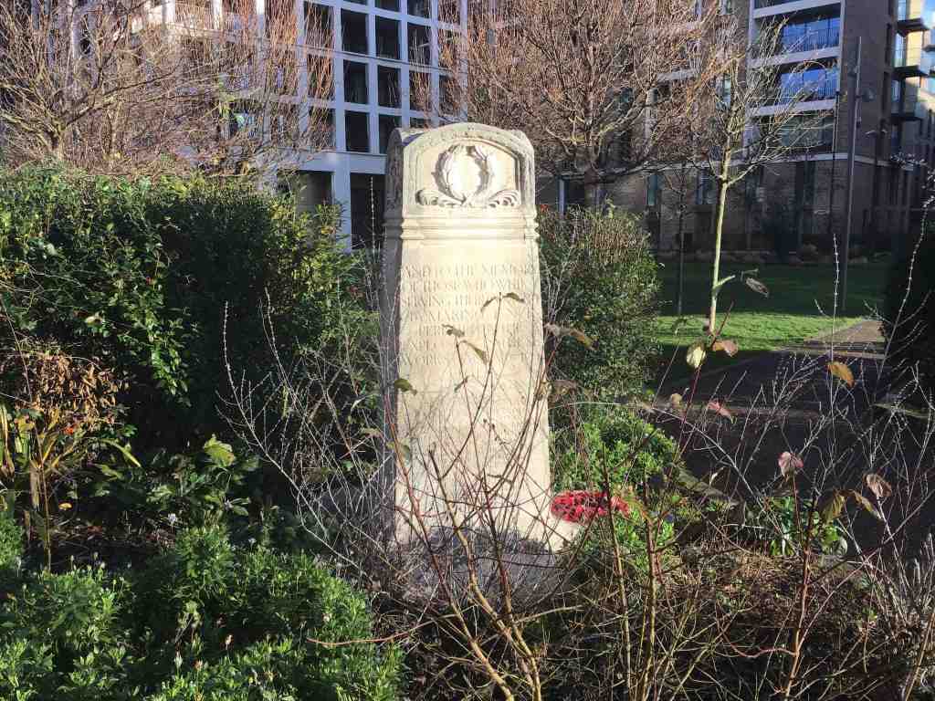In the midst of the new developments are several parks and in one I found this simple but beautifully situated memorial just 2 minutes walk from a very expansive River Thames.