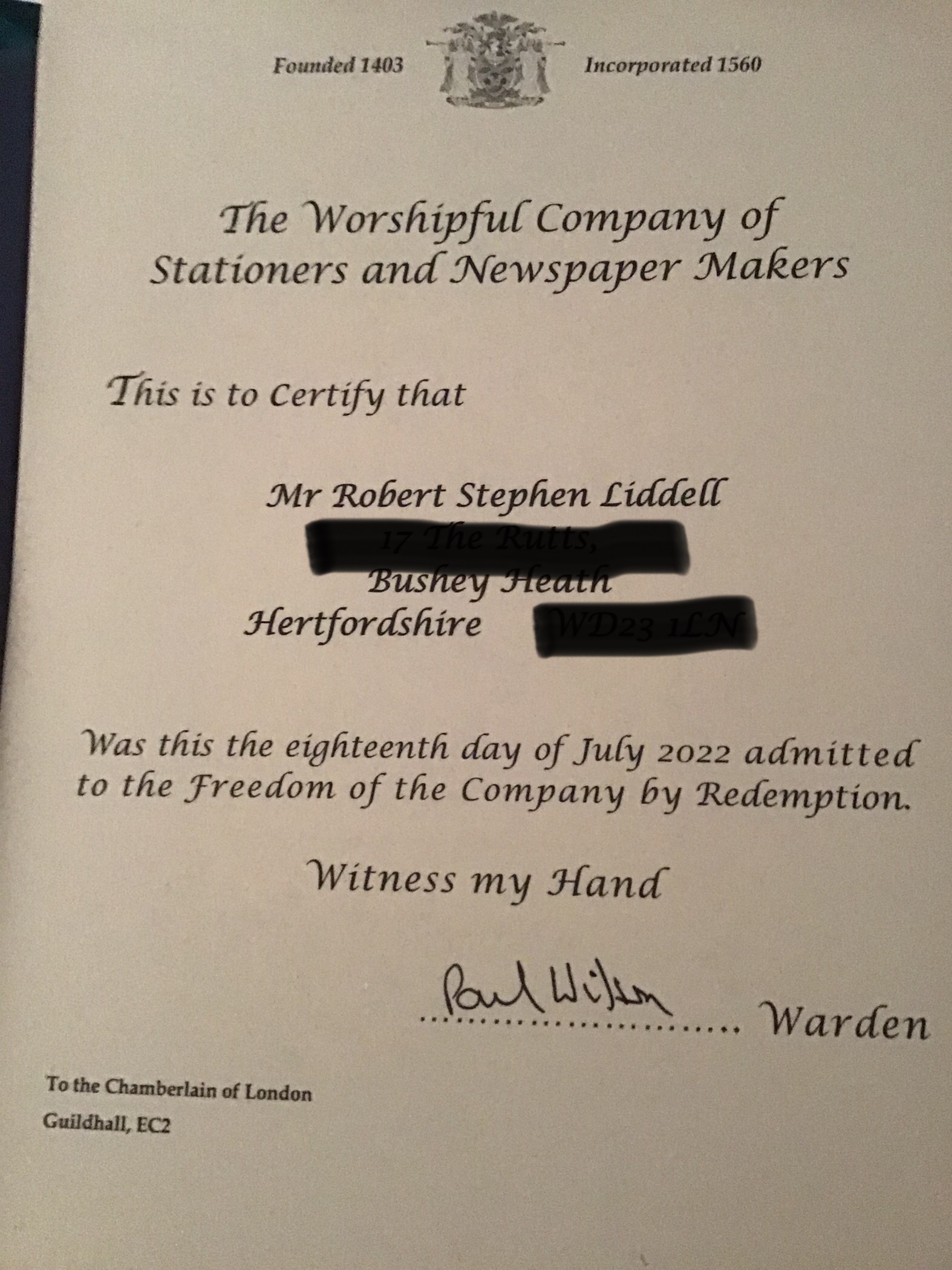 It was the day that everyone remembers and one which I had been waiting and preparing for for many months. My Freedom Ceremony at The Stationers Company. The only thing that I didn’t foresee was that it would be the hottest day in the history of London. I have a lovely heavy and quite fine suit which I often don’t wear from one year to the next but on Monday 18th July 2022, there was I in my best suit, shirt and tie with shoes that were polished within an inch of their lives on the first day that London breached the 40 degrees Celsius barrier.