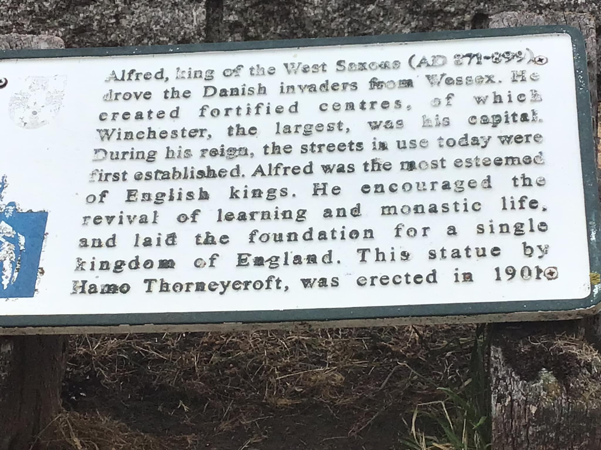 The statue was finished in 1901. It has the inscription ‘Aelfred, To the Founder of the Kingdom and Nation’.