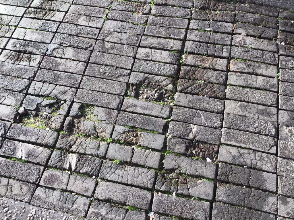 But before long, the city’s needs changed again. With the introduction of cars, horses became less common and modern construction materials overtook old paving methods. The wooden blocks often became damp, absorbed smells, and were found to be difficult to clean. The wooden streets were therefore removed—although not without incident.