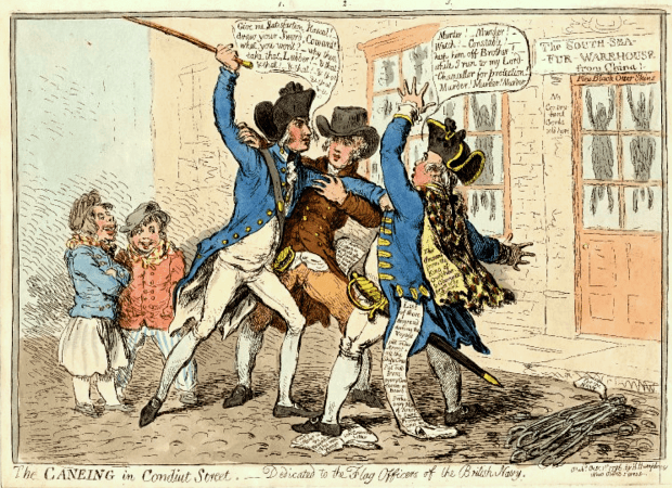 Consequently a mob gathered outside and began breaking Camelford’s windows in protest at his lack of participation in the festivities. Unperturbed, Lord Camelford armed himself with a club and stepped outside to tackle the crowd, beating them back single-handed until they were subdued.