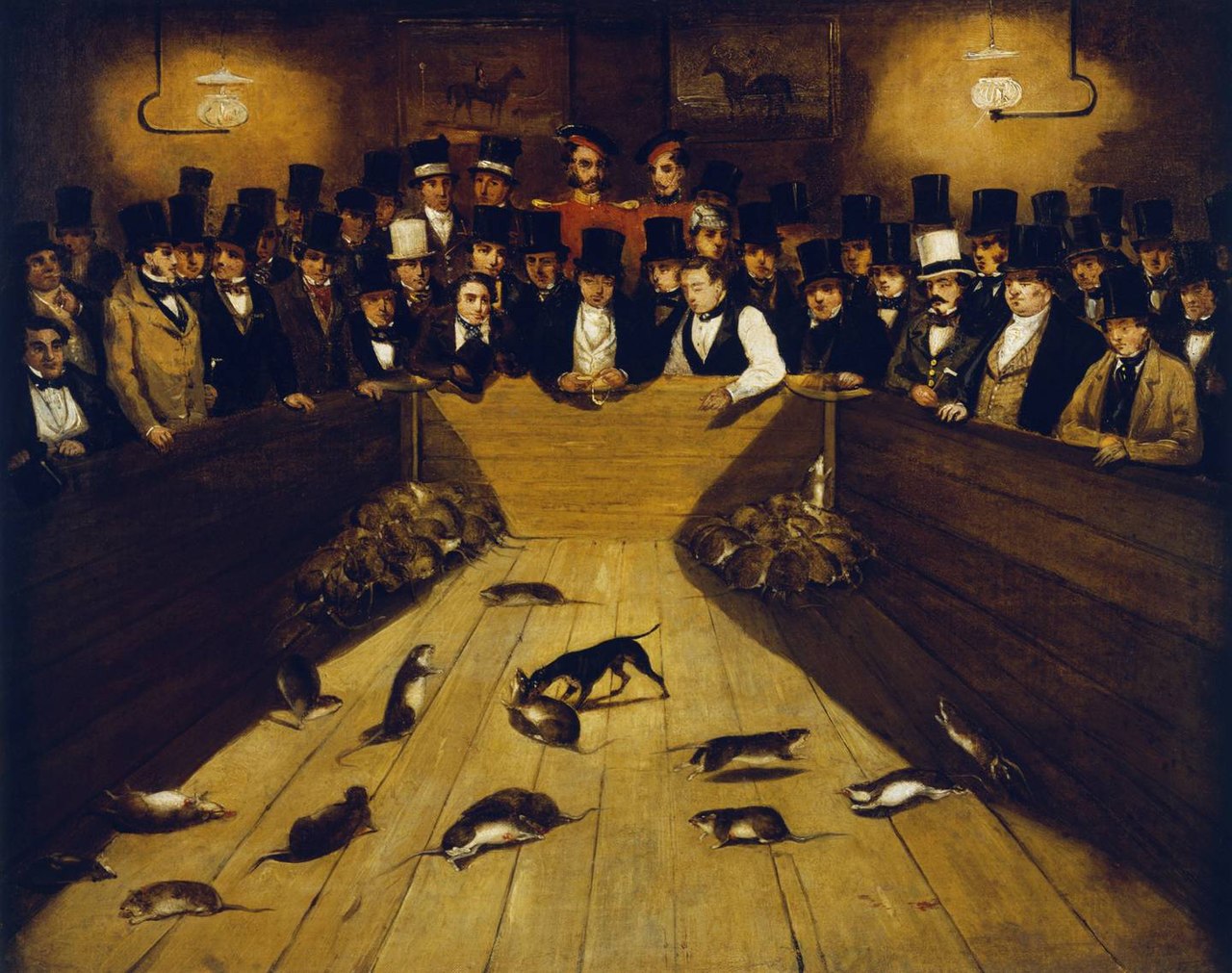 Hundreds of unsuspecting rats would be rounded up from the surrounding fields and thrown to the dogs, quite literally. Pub-goers would then place bets on how many rats their dogs could slaughter in a minute. Any rats thought to be left alive after this would be laid on a table and struck three times with a stick by the referee. A rat that managed to crawl out of the circle after this ordeal would be declared “alive” and Round Two would begin against the clock. So, not good news for the rat either way.