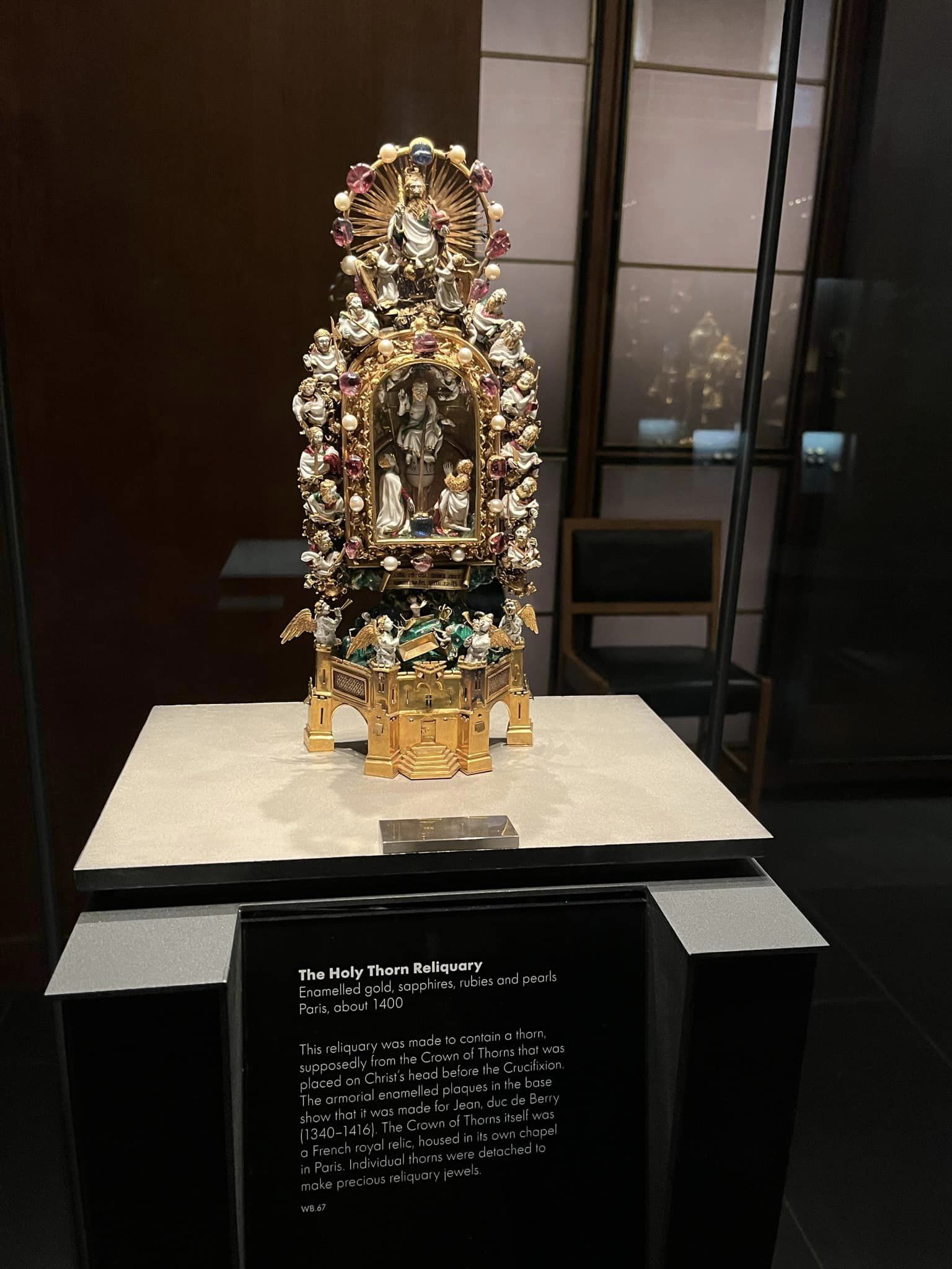 Whilst it’s undoubtedly an incredible work of art, it takes on even further significance considering it is a reliquary. About 150 years earlier, King Louis IX of France had purchased the Crown of Thorns that the Romans supposedly put on the head of Jesus at his crucifixion. If you look closely in the centre of the reliquary then you can see one of those thorns.