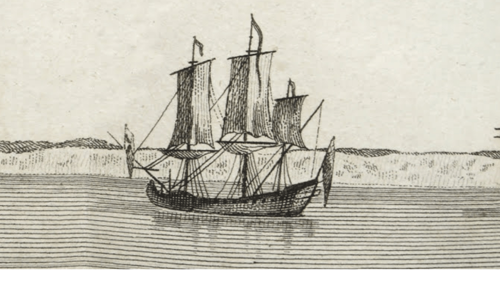 The last known drawing of Wager, just prior to transiting the Straits of Magellan on 7 March 1741, a sketch by Lieutenant Piercy Brett