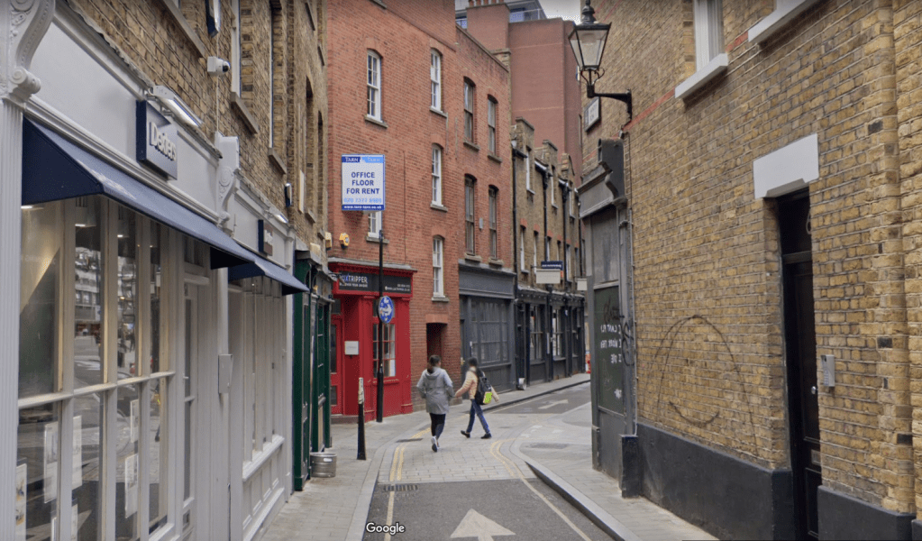 I happen to know these little alleys around where the old photo was taken very well and it only took a few seconds to find the exact spot.