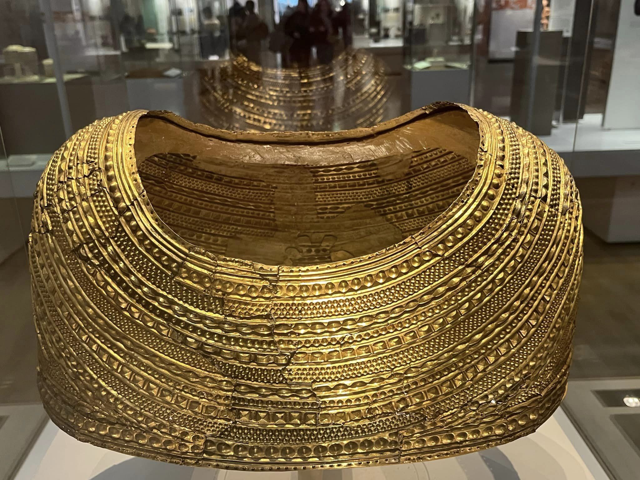 This is one of if not the finest prehistoric gold sheet workings in the entire world. It’s not from some fancy and famous ancient civilisation. Having been created around 1900BC it is almost 4,000 years old and it is not a treasure of a Pharaoh and found deep beneath the Pyramids. It’s actually British and was discovered by quarrymen almost 200 years ago in Mold, Flintshire which is in Wales.