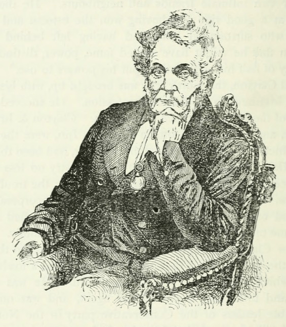 Has all the craft and subtlety of the devil. Great talents, indefatigable industry, immense wealth, and wonderful tact and facility in conducting business, give him an influence in society rarely possessed by an individual. Was unanimously re-elected Town Clerk because the Clique had not a man equal to supply his place. Can do things with impunity that would damn an ordinary man. A good voice, speaks well, and never wastes a word. Has a careworn, but sly countenance and spare person — limps in his gait from an accident — and loves the ladies.