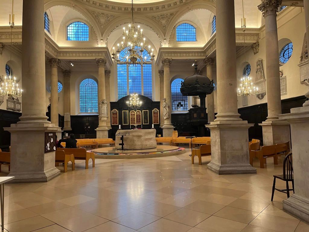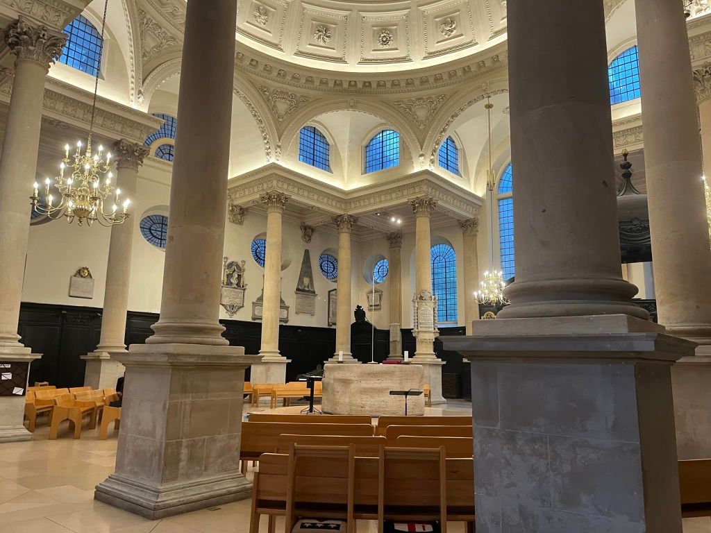 Tucked away about 10 minutes walk from St Pauls is the wonderful little St Stephen Walbrook church whose dome is often said to have been the prototype or test for its larger and more famous neighbour at St Pauls Cathedral.
