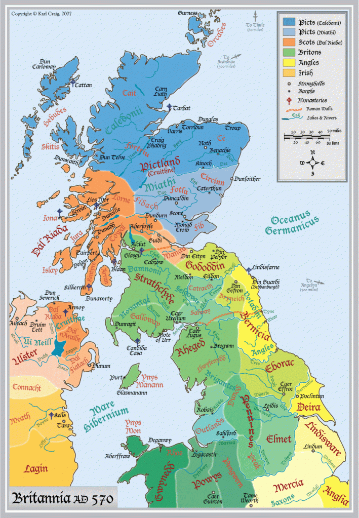 The modern county of Cumbria is really the heart of Rheged, and was once known by the old the British word ‘cymri’ which means ‘men of the same area or country. In fact the Welsh word for Wales is Cymru and has a pretty much similar origin. The Anglo-Saxons had another name for them ‘Wealas’- the foreigners which became Wales.